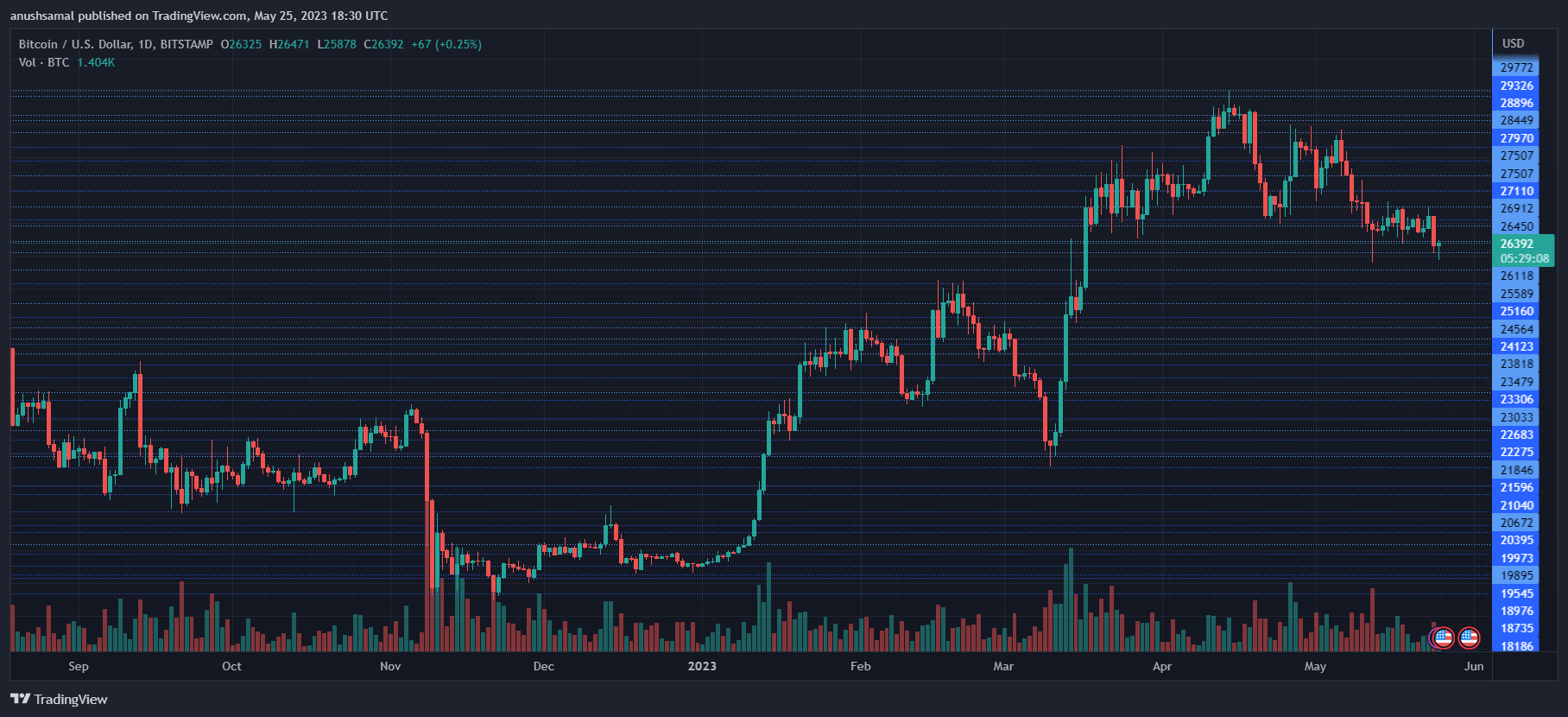 Bitcoin wurde auf dem Ein-Tages-Chart mit 26,400 $ bewertet | Quelle: BTCUSD auf TradingView Ausgewähltes Bild von UnSplash, Diagramm von TradingView.com