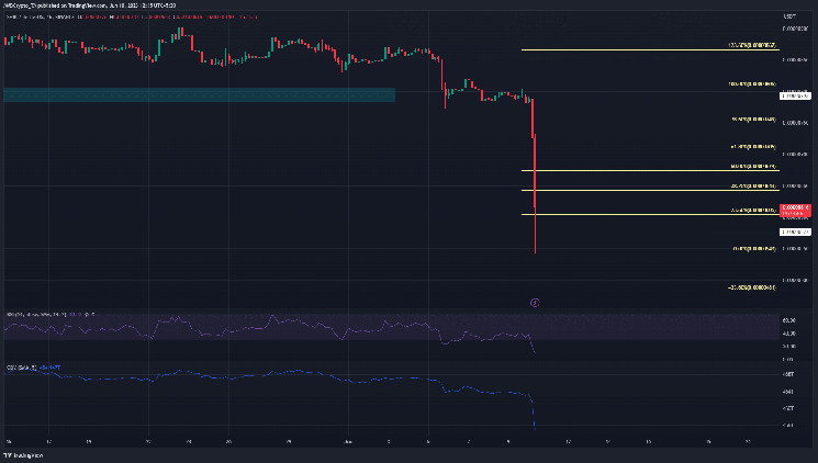 Der Abwärtstrend war zwar nicht überraschend, aber seine Heftigkeit schon. Der OBV fiel von einer Klippe und der RSI erreichte auf dem 4-Stunden-Chart 10. Beide Indikatoren zeigten innerhalb kurzer Zeit einen enormen Verkaufsdruck.