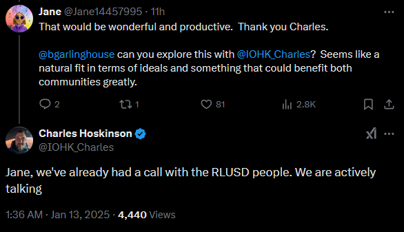Hoskinson äußerte sich positiv über das RLUSD-Team und bezeichnete sie als