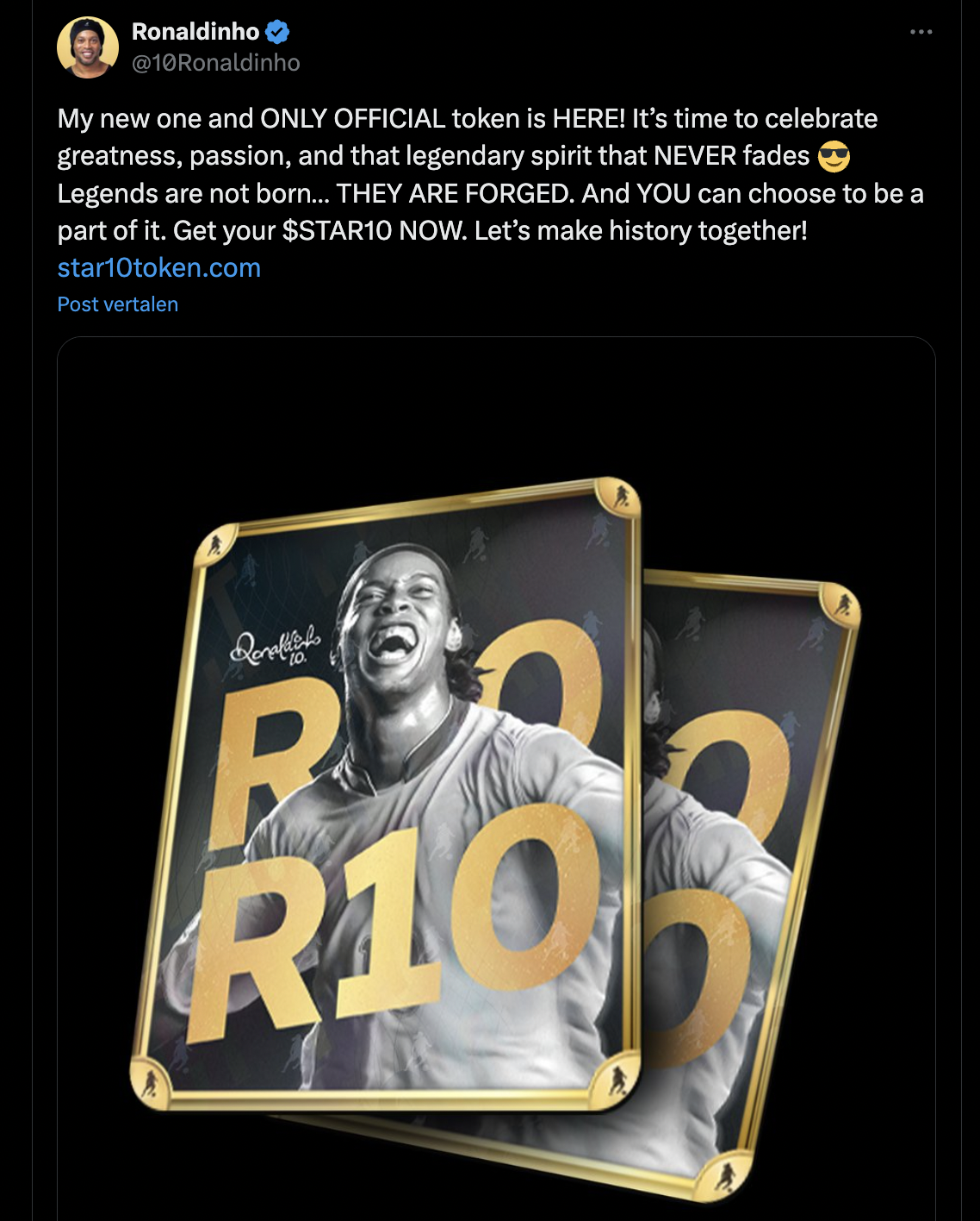 Die Einführung von STAR10 wurde von Ronaldinho persönlich auf X groß angekündigt. Er präsentierte den Token als Erweiterung seines Vermächtnisses und als Tribut an seine Fußballkarriere. In seiner Werbebotschaft erklärte er:
