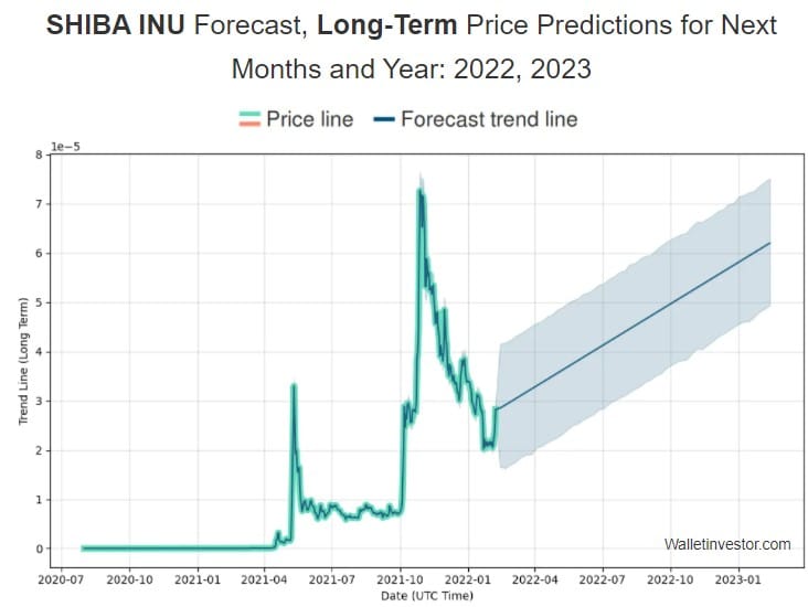 Und die Zukunft könnte für Käufer von SHIB/USD weiter rosig aussehen. Zumindest erwarten das die Analysten. So prognostiziert Wallet Investor bis 2027 eine weitere Preissteigerung von mehr als 550 Prozent. Damit würde der Kurs von SHIB/USD auf knapp 0,0002 Dollar steigen. Das ist immer noch deutlich weniger als 1 Cent, kann für Investoren bis dahin aber eine Rendite von tausenden von Euro einbringen.