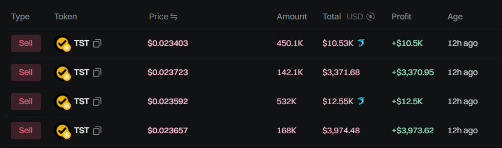 - Eine Entwickler-Wallet hat TST im Wert von 30.400 US-Dollar in vier Transaktionen verkauft.