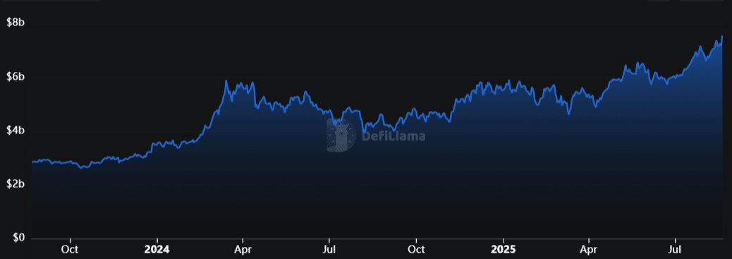 Der Anstieg von BNB ist kein Zufall. Das Netzwerk hinter dem Coin, die Binance Smart Chain (BSC), läuft in den vergangenen Wochen auf Hochtouren. Der insgesamt im Netzwerk hinterlegte Wert (TVL) liegt inzwischen bei 7,6 Milliarden Dollar, dem höchsten Stand seit Mai 2022.