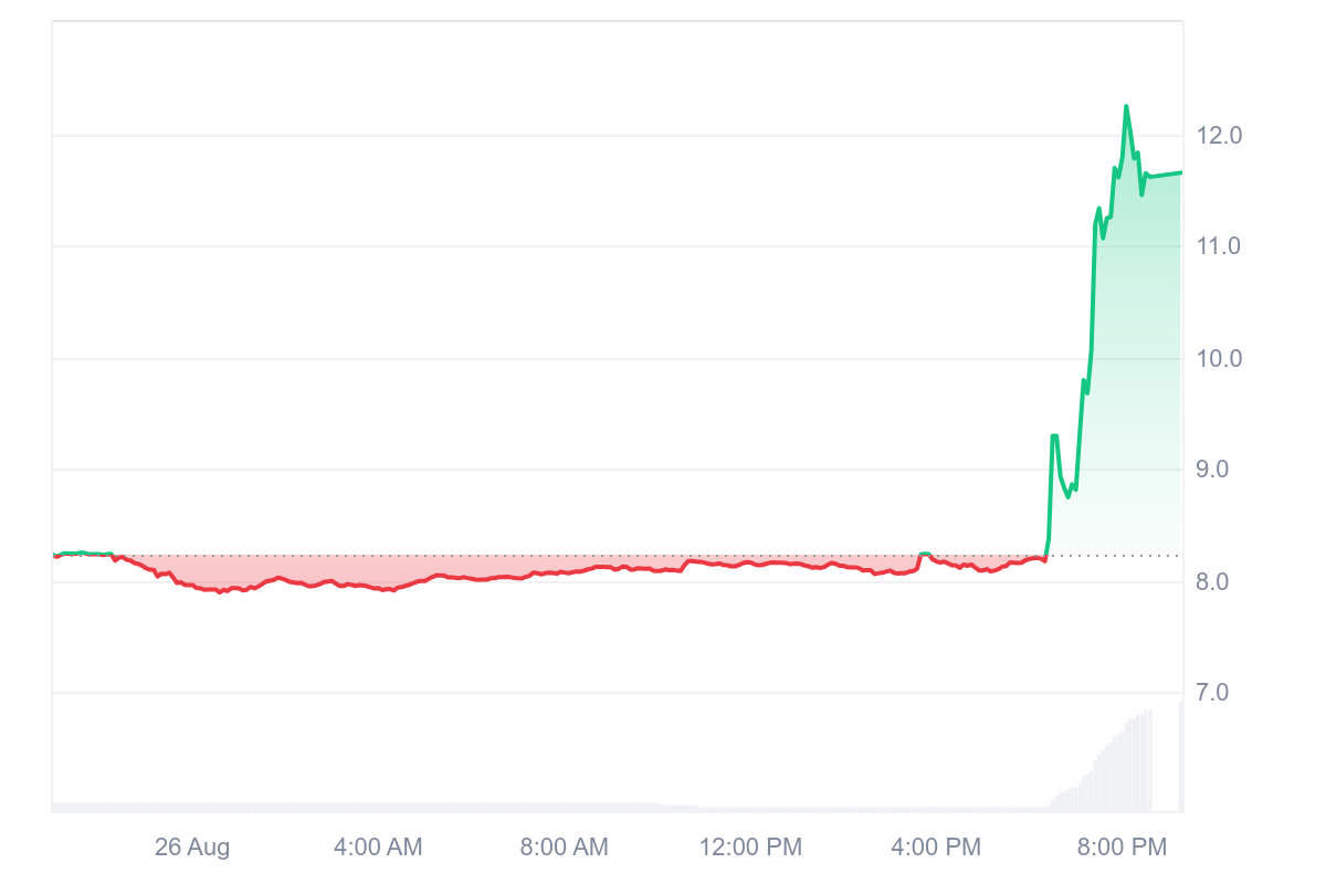 Am 26. August gab das Numerai-Team bekannt , dass JPMorgan sich eine Kapazität von 500 Mio. $ in Numerai gesichert hat, was den starken Preisanstieg auslöste. Die Zuwächse übertrafen die von Cronos (CRO), die nach der Ankündigung einer Partnerschaft von Trump Media mit Crypto.com in die Höhe schnellten.