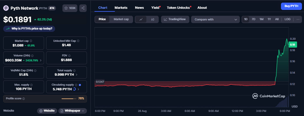 - PYTH verzeichnete nach der Nachricht einen starken Preisanstieg.