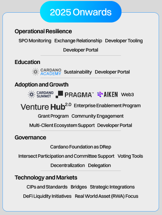 Die Governance steht bei der Entwicklung von Cardano weiterhin im Vordergrund. Mit einer bisherigen Delegation von 140 Millionen ADA an sieben Builder DReps wird die Foundation die Governance durch die Delegation von elf weiteren DReps in den Bereichen Annahme und Betrieb weiter ausbauen .