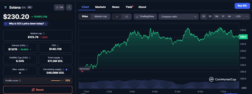 SOL ist von rund 150 $ Anfang August auf über 250 $ am 18. September gestiegen.