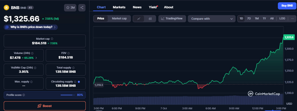 Der Binance-Token erreichte heute mit 1.325 $ ein neues Allzeithoch, was eine der robusten Leistungen unter den Top-Altcoins in diesem Monat darstellt.
