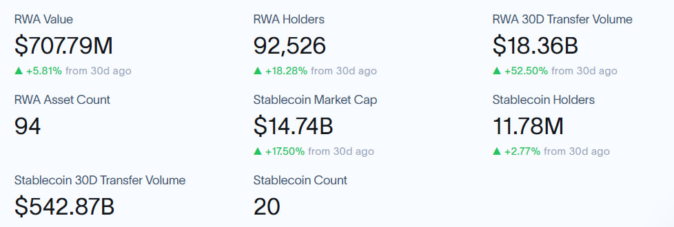 - Die RWA-Inhaber stiegen im vergangenen Monat um 18 %, was auf eine verstärkte Akzeptanz hindeutet.