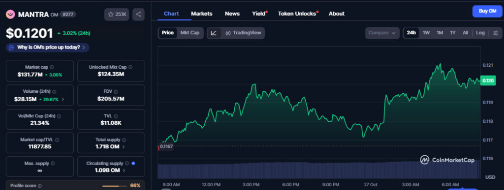 OM hat am letzten Tag um mehr als 3% auf 0,1201 $ zugelegt.