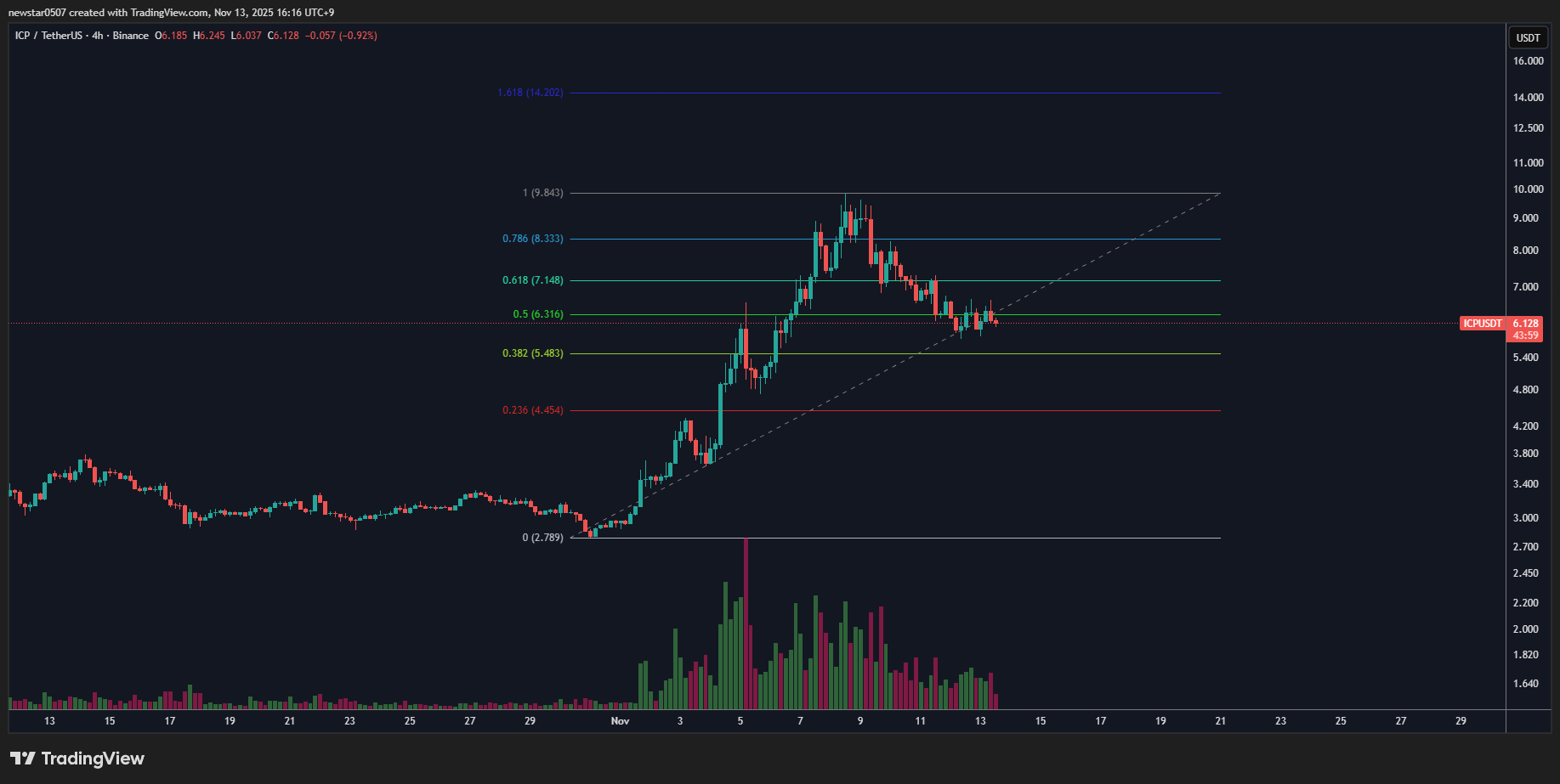 Analyst CW prognostiziert für ICP eine Korrektur auf 5,50 $, bevor eine Erholung auf 14,20 $ möglich ist, entsprechend dem Fibonacci-Wert von 1,618.