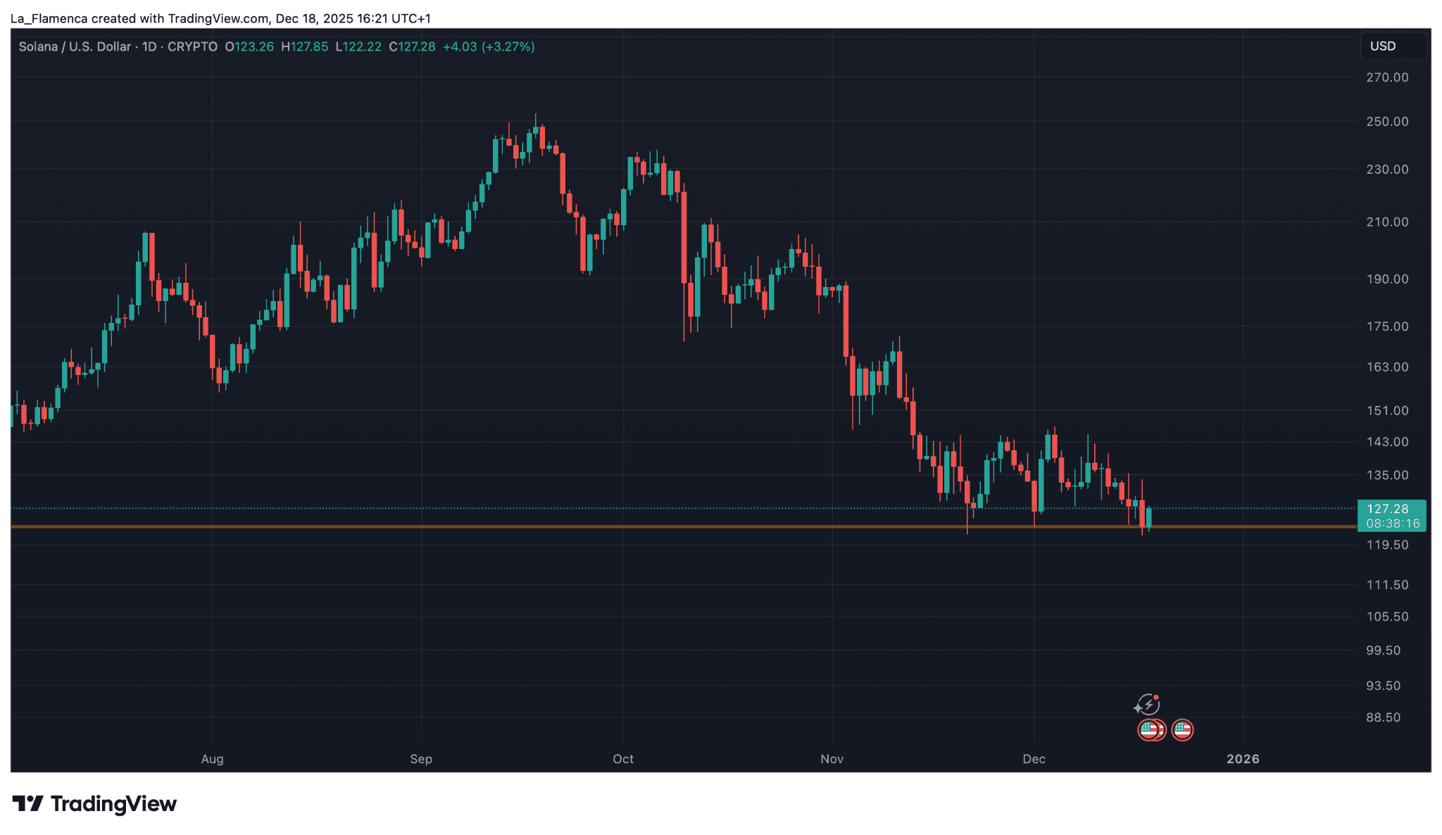 SOL/USD tägliche Kursgrafik mit Unterstützungsniveau. Quelle: La_Flamenca via TradingView