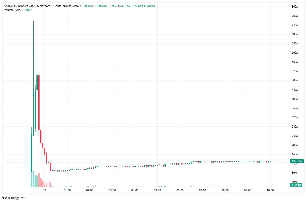 Der frühere New Yorker Bürgermeister Eric Adams stellte am 12. Januar 2026 am Times Square den NYC-Token vor. Der auf Solana basierende Memecoin erreichte eine Marktkapitalisierung von 540 Millionen Dollar, bevor er innert 30 Minuten um über 80 Prozent auf 87 Millionen Dollar abstürzte.