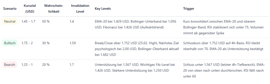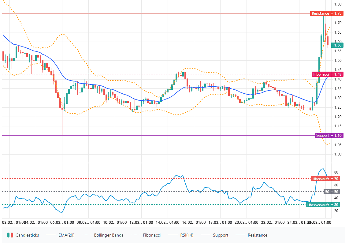 Gleichzeitig ist Vorsicht angebracht. Der RSI liegt bei über 80 Punkten und signalisiert eine überkaufte Situation. Nach solch steilen Bewegungen folgt häufig zumindest eine Phase der Abkühlung. Erste Unterstützungen liegen im Bereich um 1,567 US-Dollar. Darunter gewinnt die Zone um 1,426 US-Dollar an Bedeutung.