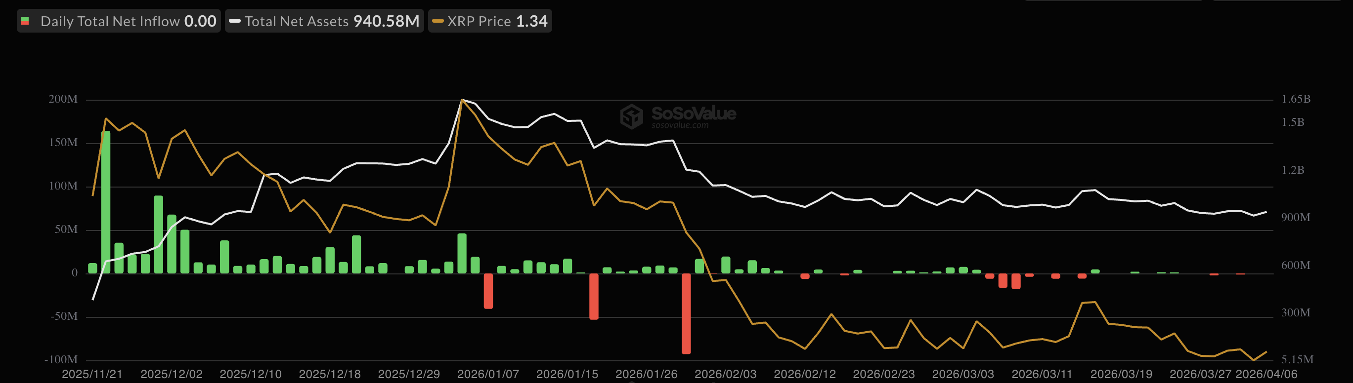 Das gesamte von US-Spot-$XRP-ETFs verwaltete Vermögen ist von einem Höchststand im Januar von etwa 1,65 Milliarden USD auf ungefähr 950,58 Millionen USD gefallen.