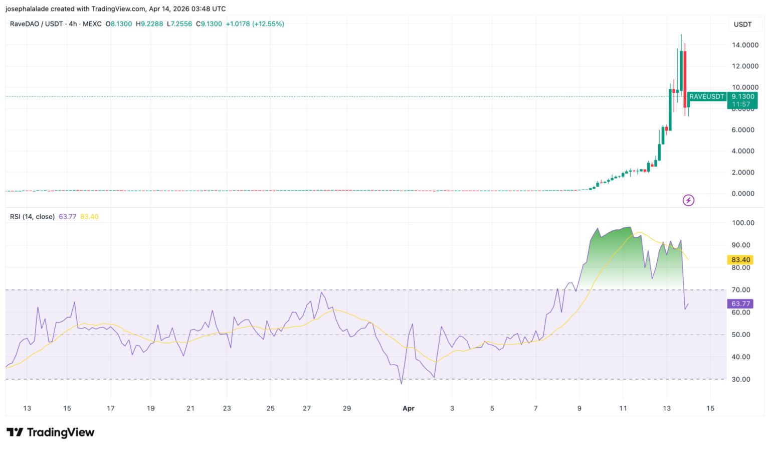 Der Kurs der RaveDAO-Coin ist in den letzten 24 Stunden um über 46 % gestiegen, und in den letzten 7 Tagen stieg $RAVE von 0,25 $ auf ein Allzeithoch von 14,19 $ – ein 45-facher Anstieg, der die Marktkapitalisierung kurzzeitig auf über 2,2 Milliarden Dollar trieb. Was folgte, war ein sofortiger und heftiger Rückgang sowie eine Debatte, in der es weniger um die Dynamik ging, sondern vielmehr darum, wer schon positioniert war, bevor es andere bemerkten.