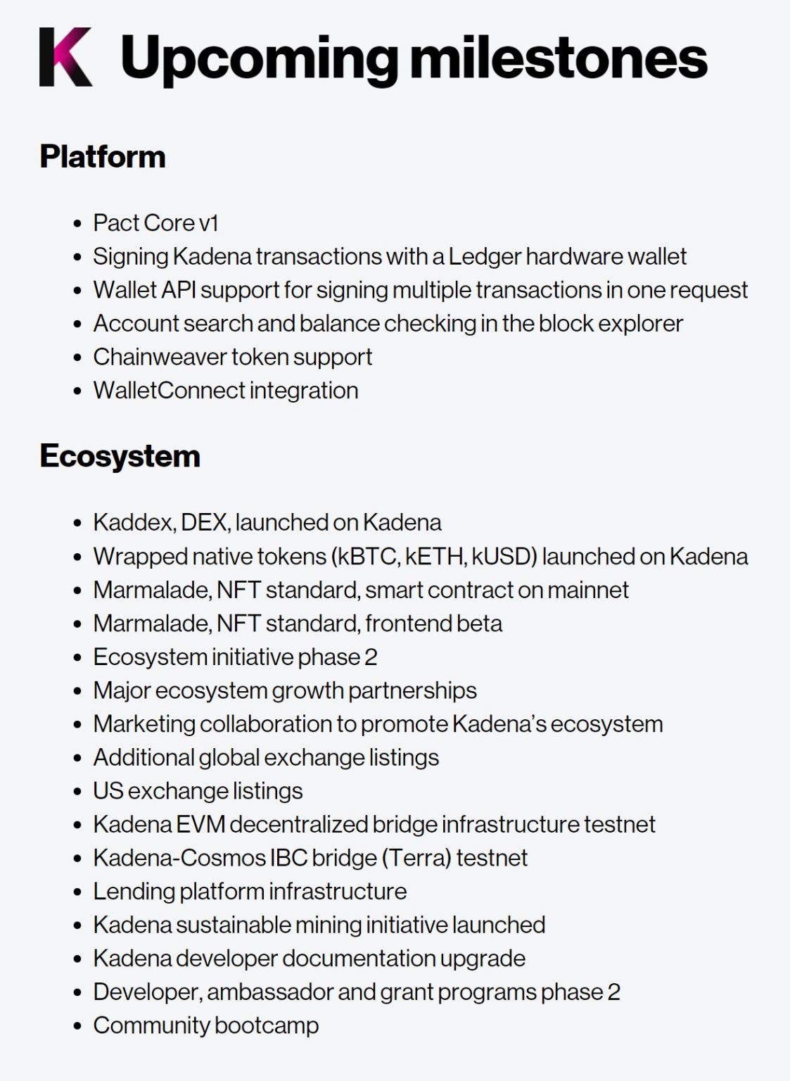 Ein Blick auf die Kadena Roadmap verrät allerdings, dass für dieses Jahr noch einiges mehr geplant ist. Sehr viel mehr sogar.