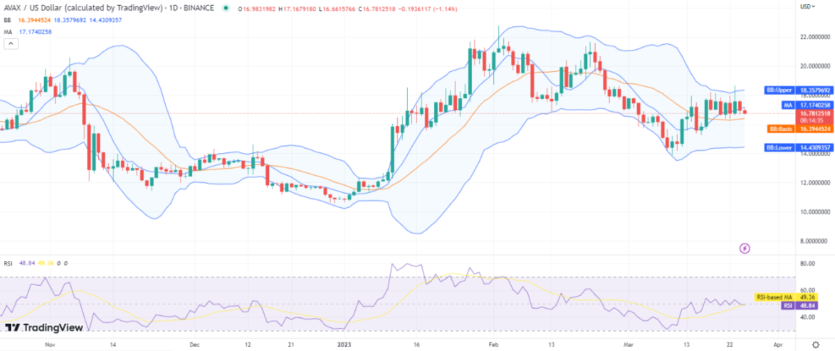 Das 1-Tages-Preisdiagramm für die Avalanche Preisanalyse zeigt, dass sich der Kryptowährungsmarkt derzeit in eine rückläufige Richtung bewegt, da die Preisniveaus stetig sinken. Als der Preis auf 16,78 US-Dollar fiel, blieb der Trend heute im Einklang mit dem der vorangegangenen Tage: Er ist sehr rückläufig.