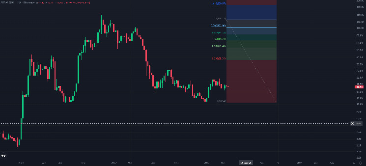 Ich erwarte nicht, dass sich AVAX in diesem Jahr seinen historischen Höchstständen nähern wird. Mithilfe des Fibonacci Retracement Tools schätze ich den Preis des Tokens konservativ auf das 0,618 Fib-Level, d.h. auf etwa 83 $.
