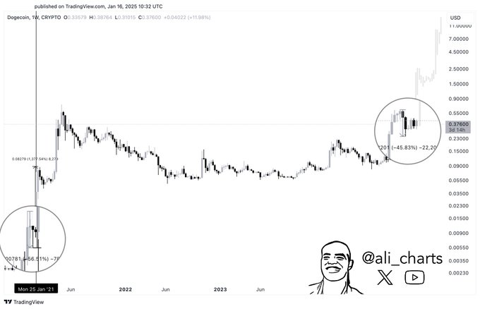 Wale haben 200 Millionen #Dogecoin $DOGE in den letzten 48 Stunden gekauft! pic.twitter.com/vYSI3C2cUs-Ali (@ali_charts) January 16, 2025