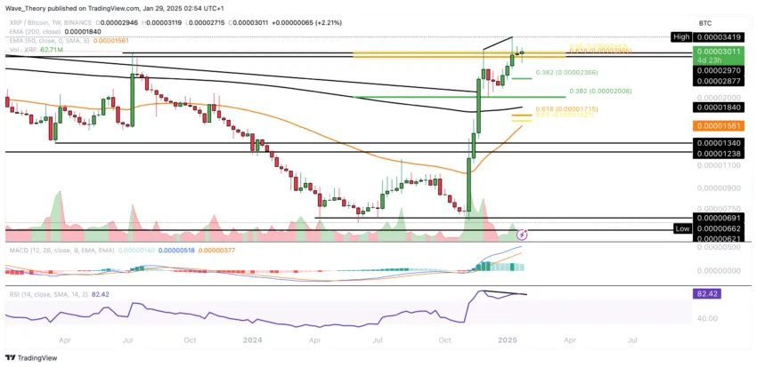 Bei rund 1,255 USD fungiert zudem der 50-Wochen-EMA als zusätzliche Unterstützung. Solange sich Ripple über der Golden Ratio bei rund 1,45 USD hält, bleibt die Aufwärtsbewegung bullisch intakt.
