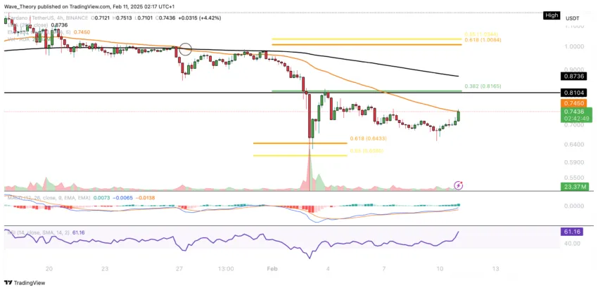 Im 4H-Chart liegt hingegen eine bärische Trendbestätigung für den Cardano Kurs vor