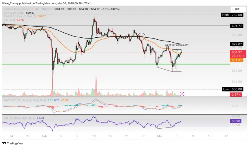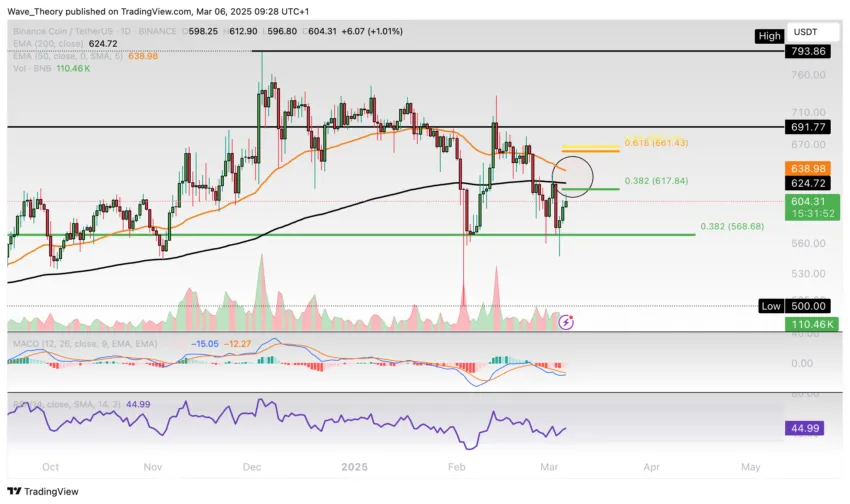 BNB-Prognose für Freitag, 07. März 2025: Wird der BNB Kurs jetzt bullisch abprallen oder bärisch ausbrechen?