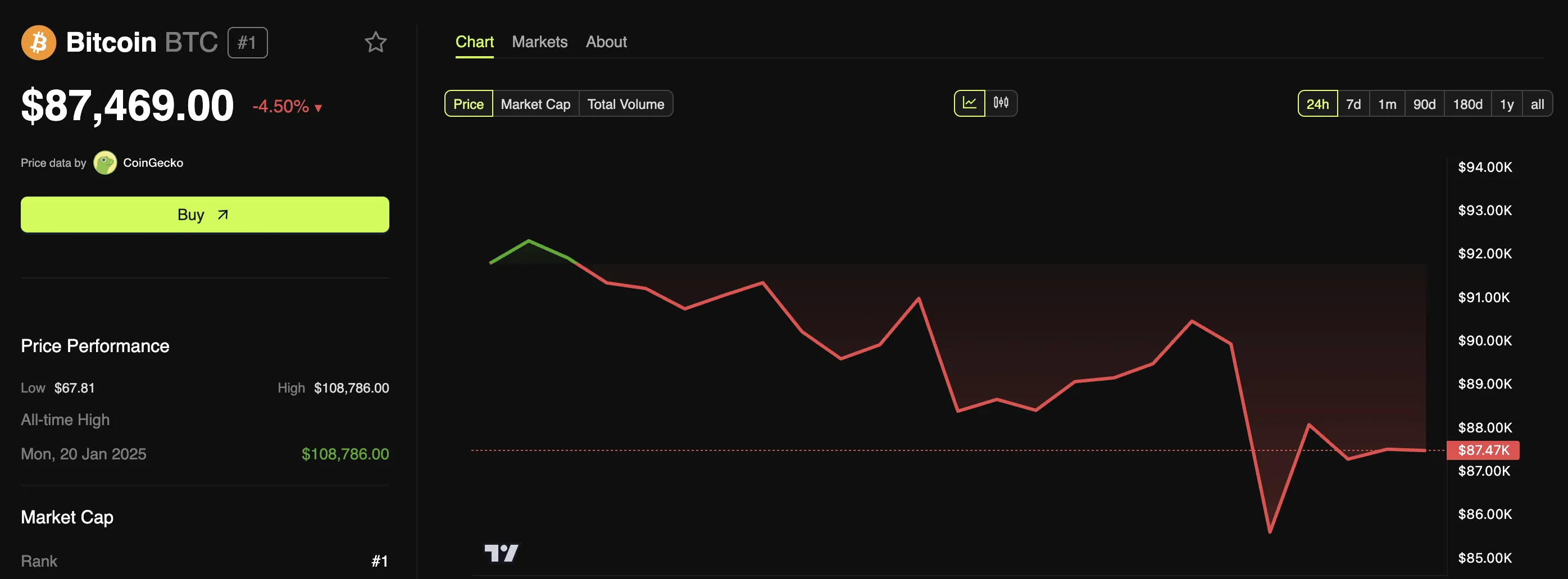 Nachdem der Bitcoin am 5. März kurzzeitig dieses Niveau wieder erreicht hatte, fiel er erneut unter 90.000 USD. Zum Zeitpunkt der Veröffentlichung wurde Bitcoin bei 87.469 USD gehandelt, was einen Rückgang von 4,5 Prozent in den letzten 24 Stunden darstellt.