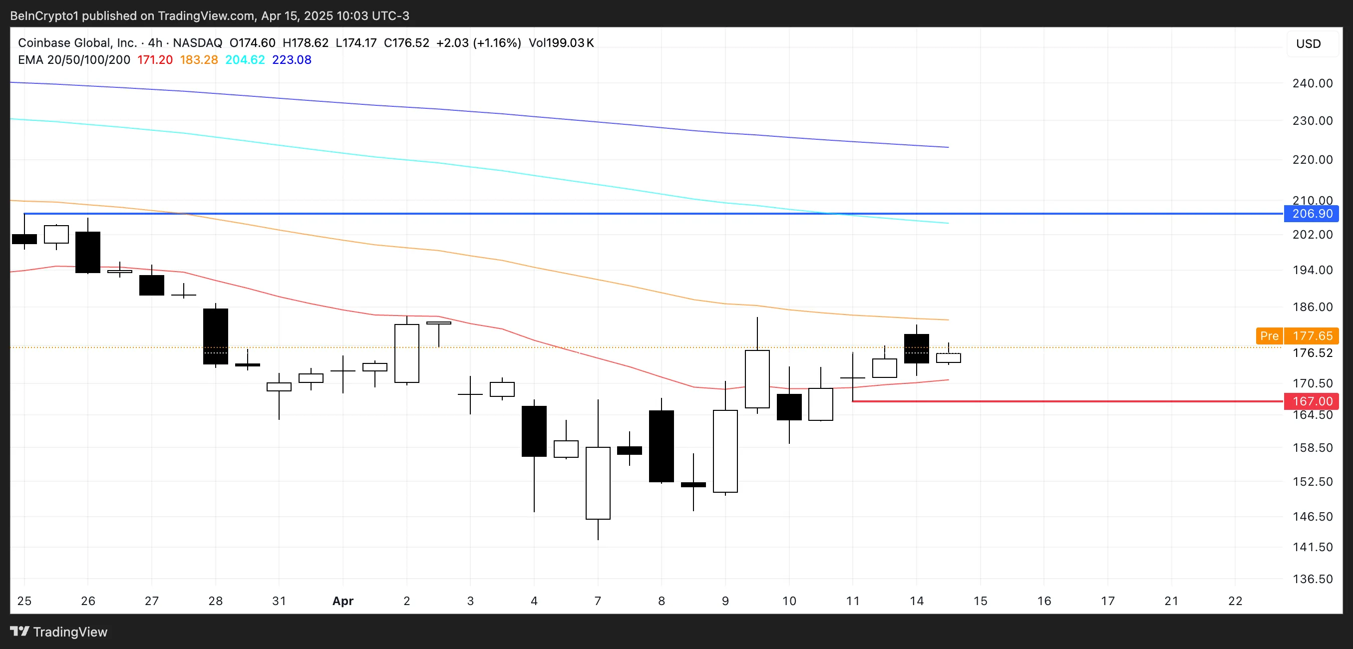 COIN ist in den letzten fünf Tagen um 12 Prozent gestiegen und versucht sich nach einem Rückgang von fast 29 Prozent seit Jahresbeginn zu erholen.