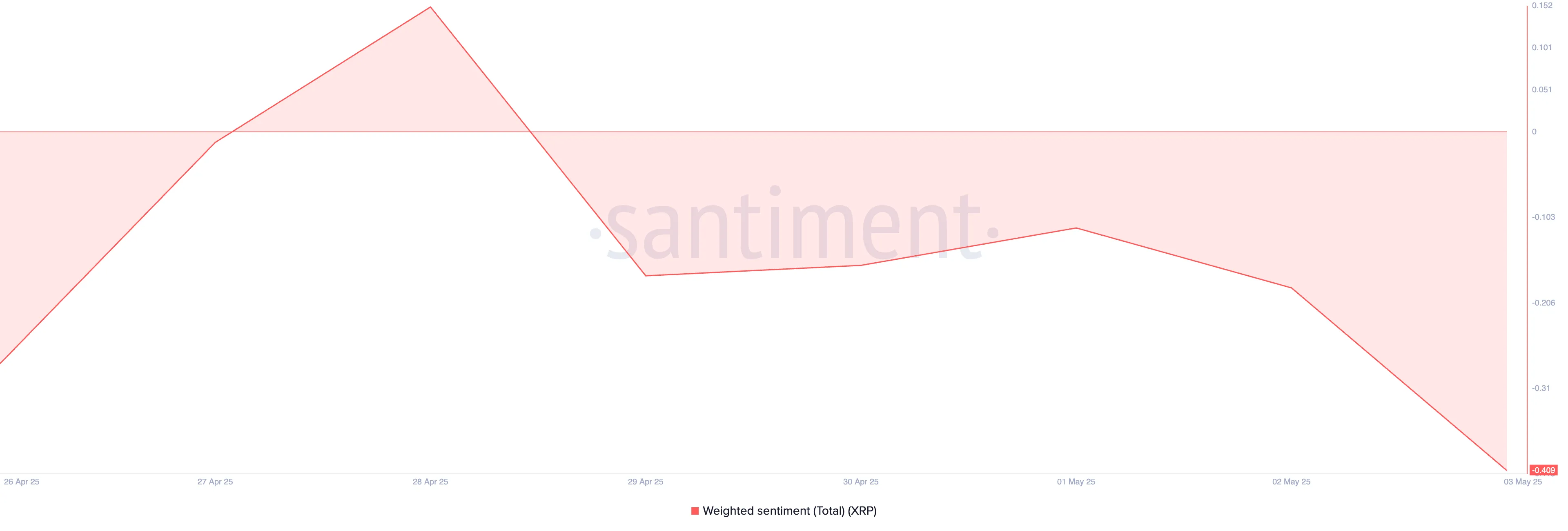 Zusätzlich bleibt das gewichtete Sentiment von Ripple im negativen Bereich, was den bärischen Ausblick bestätigt. Aktuell liegt er bei -0,40.