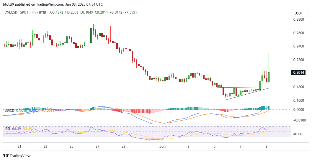 Die Preisbewegung von AVL signalisiert bullische Signale, wobei der Token um 0,20 $ gehandelt wird.