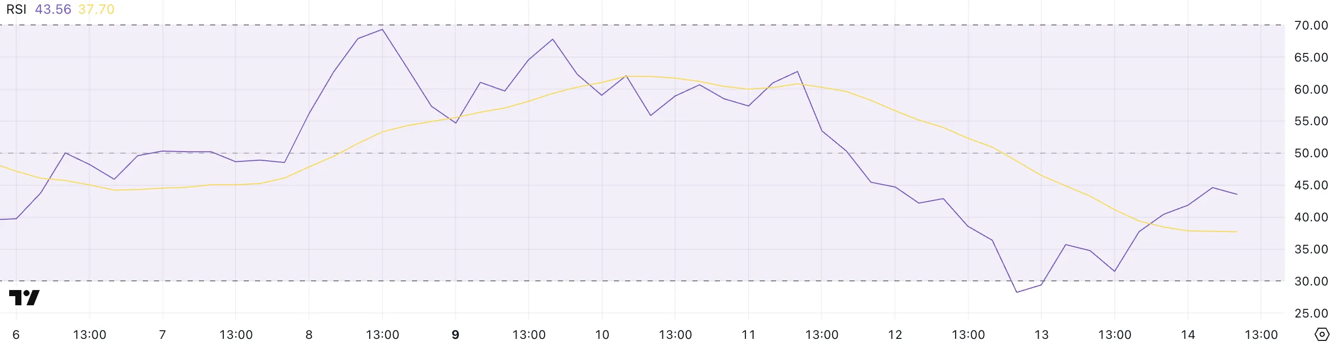 Der RSI ist auf 43,56 gestiegen und damit deutlich höher als die 28,24 von vor nur zwei Tagen. Der RSI ist ein Momentum-Indikator, der die Geschwindigkeit und das Ausmaß jüngster Kursänderungen misst – typischerweise auf einer Skala von 0 bis 100.