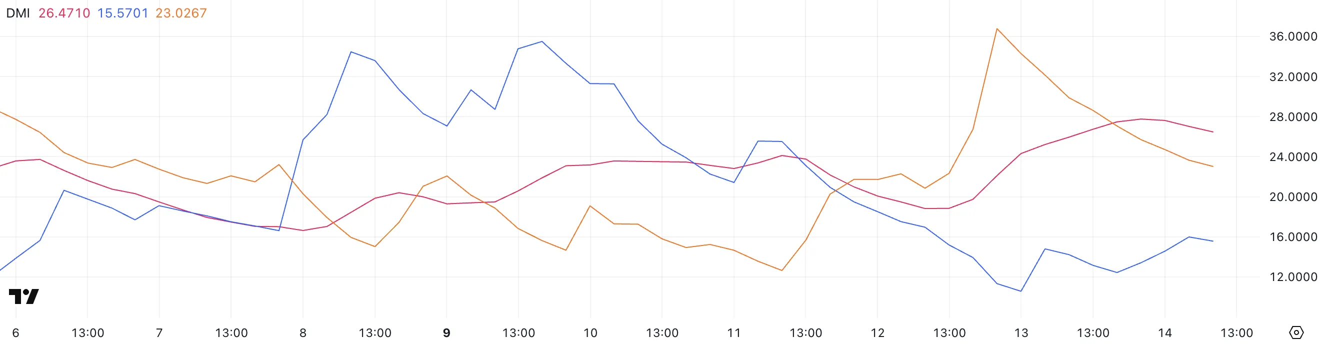 Der Average Directional Index (ADX) von XRP, der die Stärke eines Trends unabhängig von dessen Richtung misst, ist von 18,84 auf 26,47 gestiegen und hat somit die wichtige Schwelle von 25 überschritten. Diese markiert typischerweise den Beginn eines starken Trends.