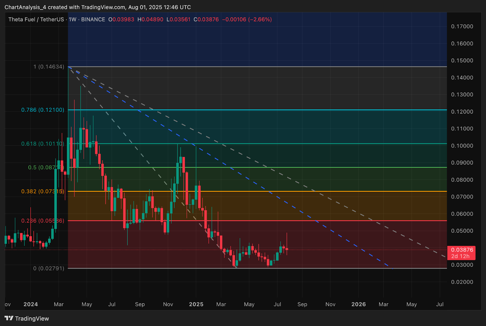 Bis 2026 könnte TFUEL beginnen, über die Widerstandszone von 0,058 $ bis 0,065 $ auszubrechen, wenn die Trendumkehr an Fahrt gewinnt. Nachhaltige Schlusskurse über dem 200-Wochen-EMA und eine breitere Altcoin-Rotation könnten den Preis in Richtung der Marke von 0,080 $ treiben. Eine Schwäche unter 0,036 $ würde eine gescheiterte Akkumulation signalisieren und könnte den Preis wieder in die unteren 0,030 $-Bereiche drücken.