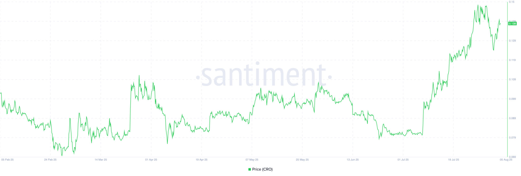 Derzeit wird Cronos Coin knapp unter dem Widerstand von 0,145 $ gehandelt, der am 29. Juli den Höchststand markierte. Wenn CRO über dieser Marke schließen kann, könnte dies einen Ausbruch bestätigen und die Tür für eine Bewegung in Richtung 0,157 $ öffnen, einem wichtigen Fibonacci-Ziel.