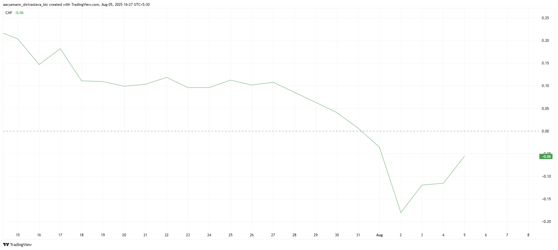 Der Chaikin Money Flow (CMF) Indikator, der den Kapitalfluss in einen Vermögenswert verfolgt, zeigt einen Anstieg für Stellar. Dies deutet darauf hin, dass XLM vermehrte Zuflüsse verzeichnet, was ein positives Zeichen für den Altcoin sein könnte. Allerdings bleibt der CMF noch unter der Nulllinie, was darauf hinweist, dass die Zuflüsse noch nicht stark genug sind, um einen nachhaltigen Aufwärtstrend auszulösen.