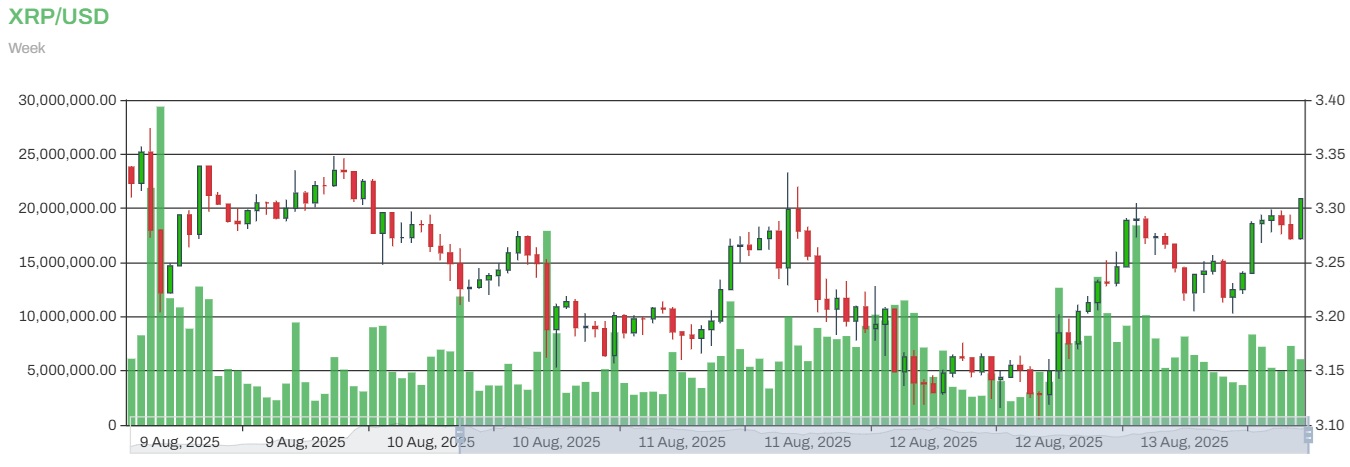 XRP hat eine Marktkapitalisierung von über 195 Milliarden Dollar, da sein Preis pro Token in den letzten 24 Stunden zwischen einem Tiefststand von 3,14 Dollar und einem Höchststand von 3,30 Dollar lag. Es hält einen Anteil von 4,8 % an der Marktkapitalisierung für Kryptowährungen.