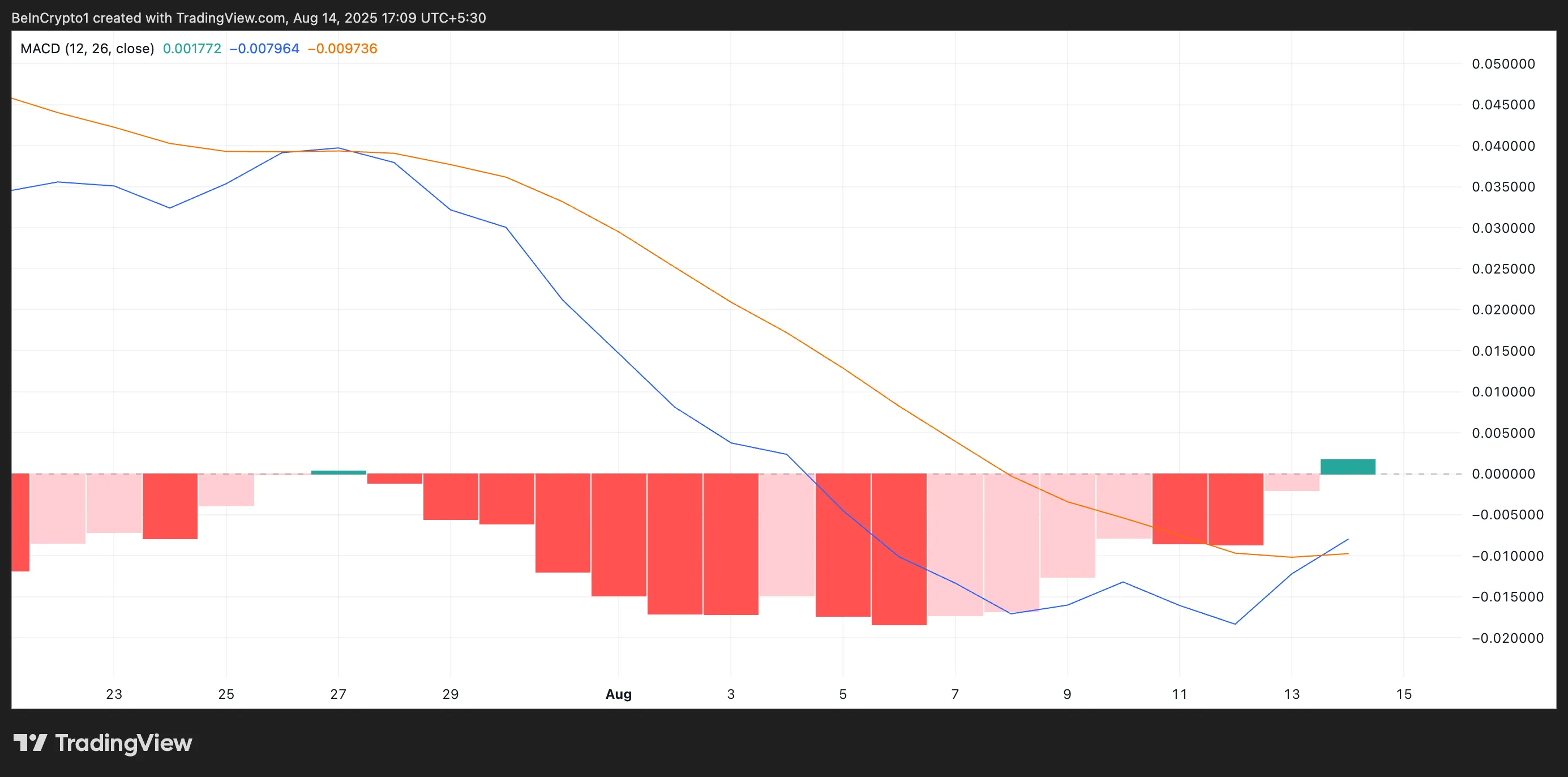 Die Werte des USELESS/USD-Eintagescharts zeigen, dass die MACD-Linie des Tokens (blau) zum ersten Mal seit dem 17. Juli über seiner Signallinie (orange) liegt.