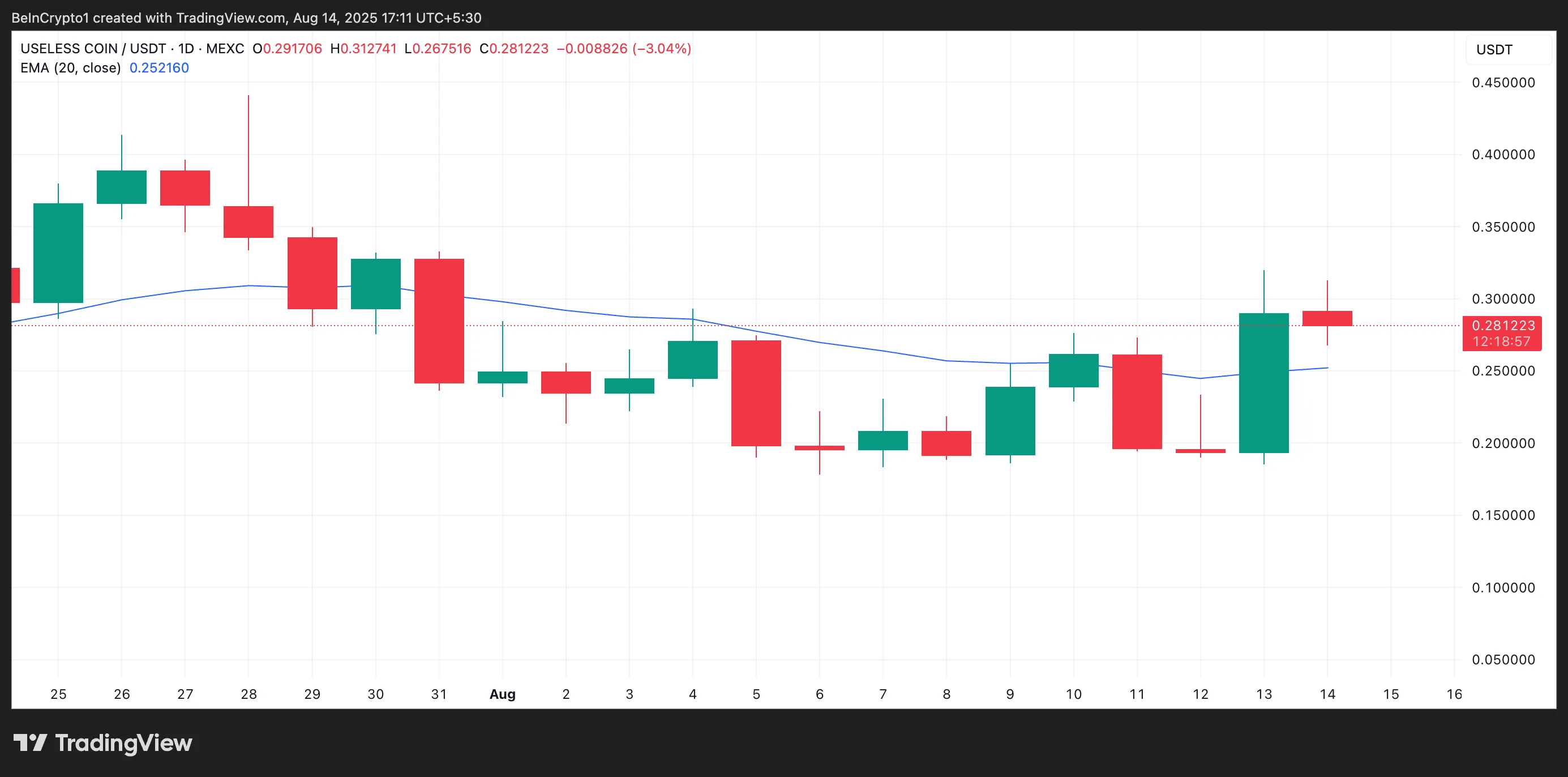 Der auf Solana basierende Memecoin USELESS ist in den letzten 24 Stunden um mehr als 30 Prozent gestiegen und gehört damit zu den besten digitalen Vermögenswerten des Tages.