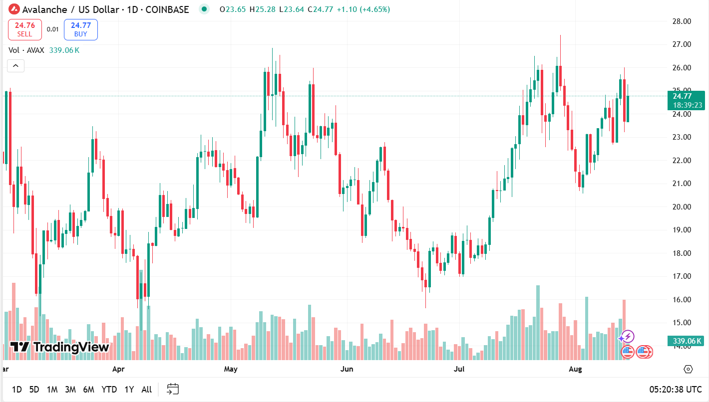 - Die Zuflüsse von AVAX-Walen steigen, und ein Ausbruch bei 27 $ könnte eine Rallye in Richtung 35 $ auslösen.