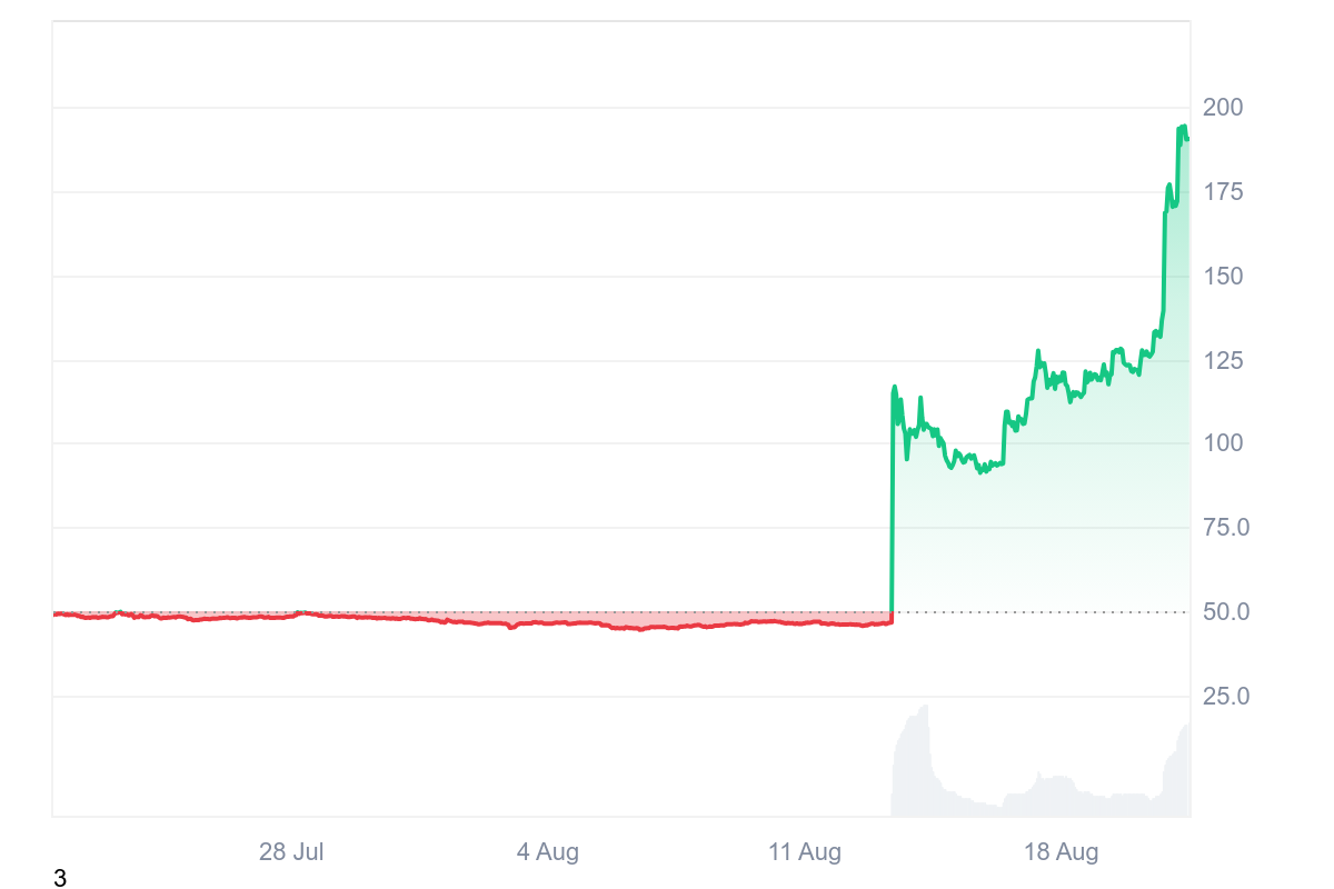 Seitdem sind die Bullen jedoch höher gehandelt worden, haben die Marke von 150 $ überschritten und am 21. August das Intraday-Rekordhoch von 195 $ erreicht.