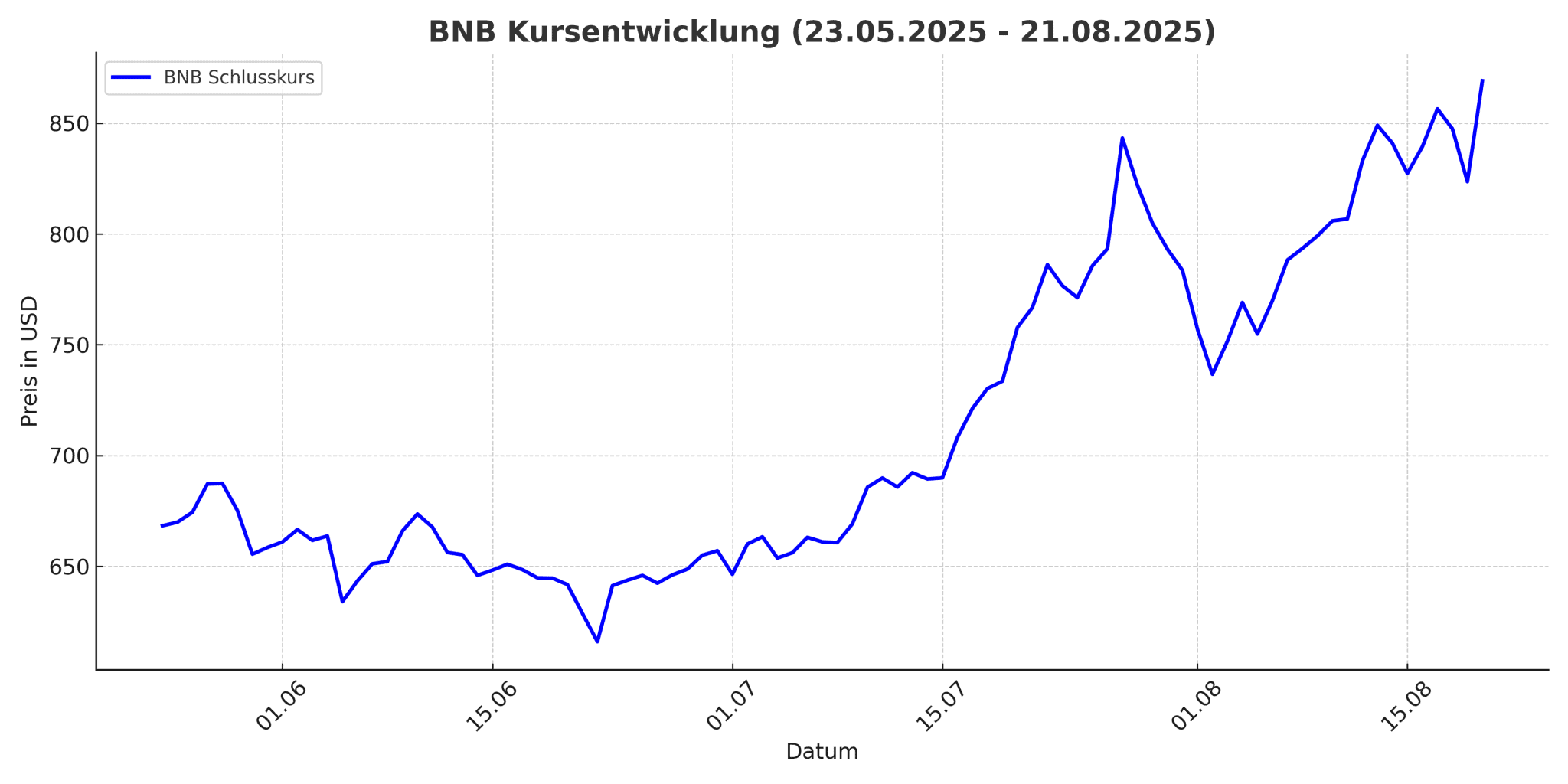 - Marktbeobachter wittern im Anstieg der Kryptowährung den Beginn eines nachhaltigen Trends. “Da börsennotierte Unternehmen auf BNB setzen, sind 1.000 US-Dollar nur noch eine Frage der Zeit”, schreibt @AkaBull (71.000 Follower) auf X.