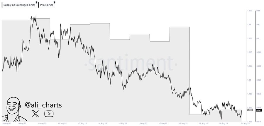 Der Analyst Ali Martínez berichtete, dass über 1 Milliarde ENA-Token von Großinvestoren aufgekauft wurden, während allein in den letzten vier Tagen 140 Millionen ENA von den Börsen abgezogen wurden, ein starkes Zeichen dafür, dass viele Inhaber langfristig denken.