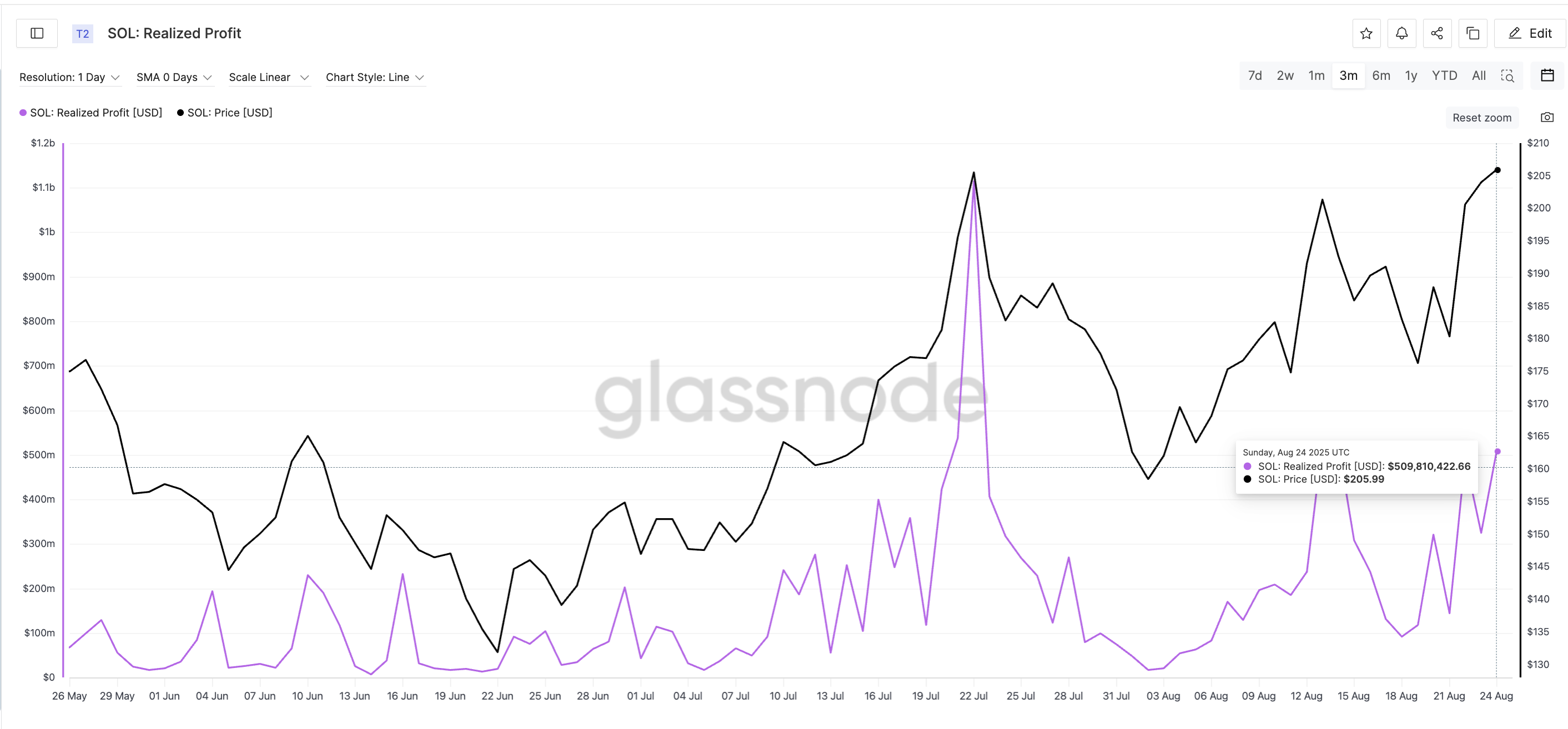 Gewinnmitnahmen waren eines der klarsten Signale hinter Solanas jüngsten Bewegungen. Jedes Mal, wenn realisierte Gewinne gestiegen sind, ist der Kurs schnell zurückgegangen.