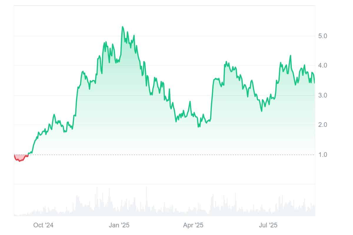 Die Kryptowährung SUI kämpft nach einem starken Hype im Jahr 2024 und einem anschließenden Rückfall auf die 2-Dollar-Marke darum, seine frühere Stärke zurückzugewinnen. Während der Coin aktuell bei 3,4 Dollar notiert, stellt sich die Frage: Könnte schon im September eine Rallye folgen, die den Coin wieder über 5 Dollar katapultiert?