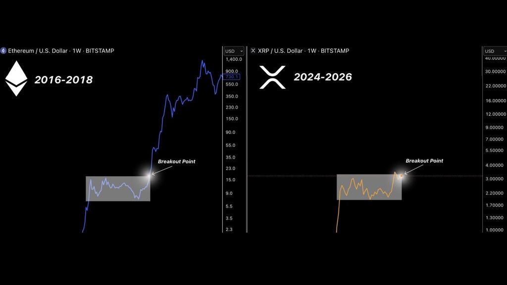 Diana, eine bekannte XRP-Befürworterin, hob hervor, dass sich über sieben Jahre hinweg eine „Mega-Cup-and-Handle“-Formation gebildet hat, was darauf hindeutet, dass ein Durchbruch über 3,66 $ die Preise auf 7 $ oder mehr treiben könnte. Noch bullischer ist Shibo, der die Entwicklung von XRP mit dem Anstieg von Ethereum im Jahr 2017 vergleicht und kühn einen Preis von 589 $ pro Token prognostiziert – was für die meisten Leute allerdings etwas weit hergeholt erscheint.