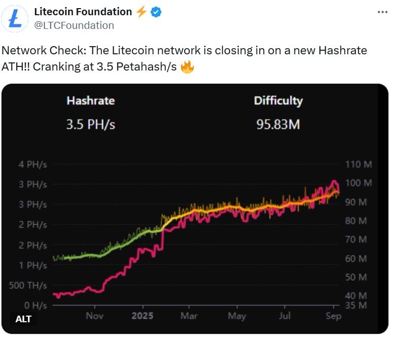 — Litecoin Foundation ⚡️ (@LTCFoundation) September 8, 2025