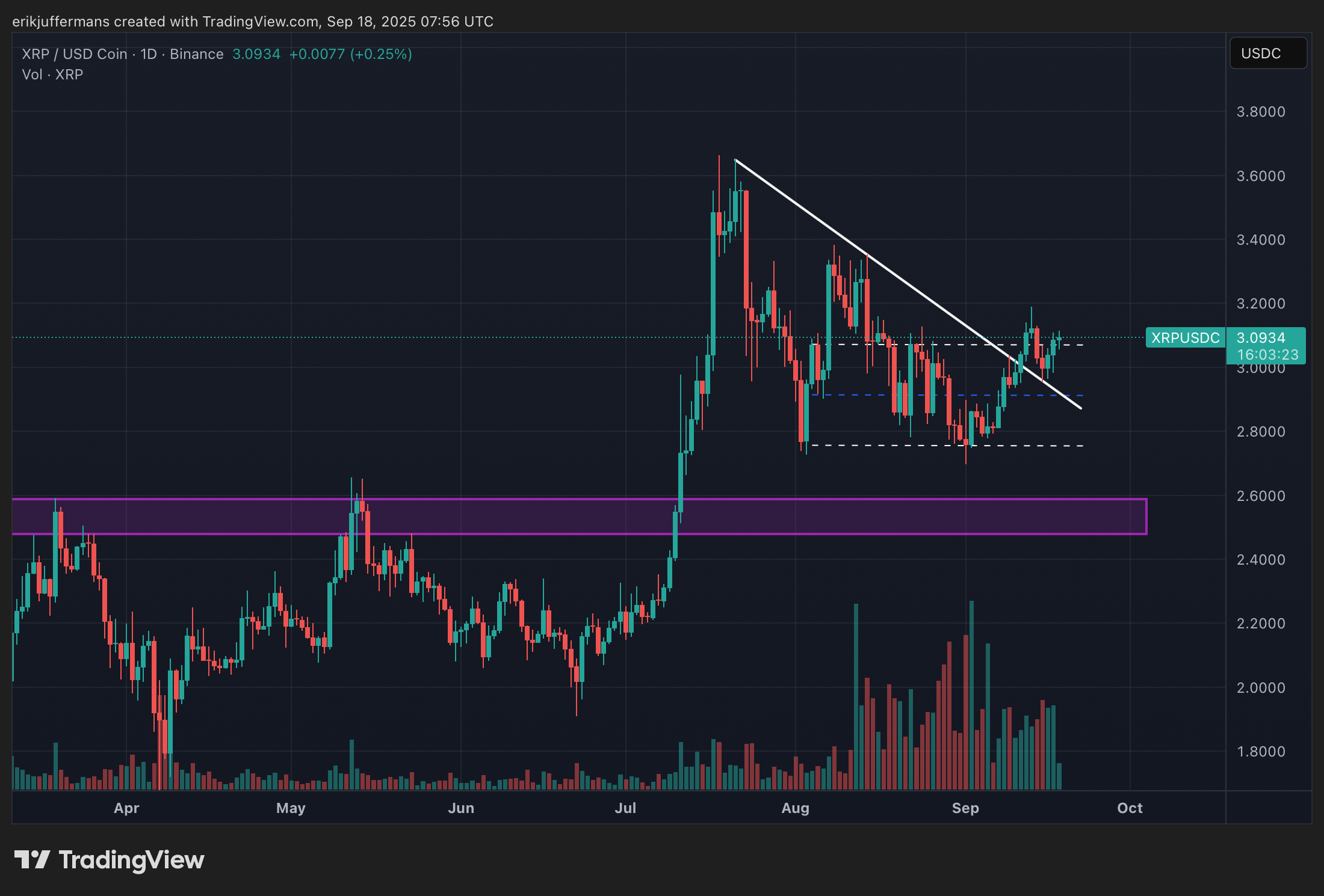 Mit dem Anstieg verzeichnete XRP bereits einen höheren Höhepunkt im Vergleich zum Höhepunkt vom 22. August. Es besteht also ein Aufwärtstrend und das Kursziel liegt damit auf dem Höhepunkt von Juli bei rund 3,55 Dollar.