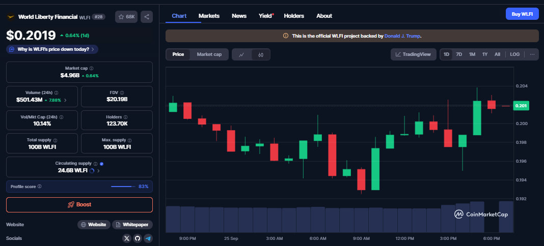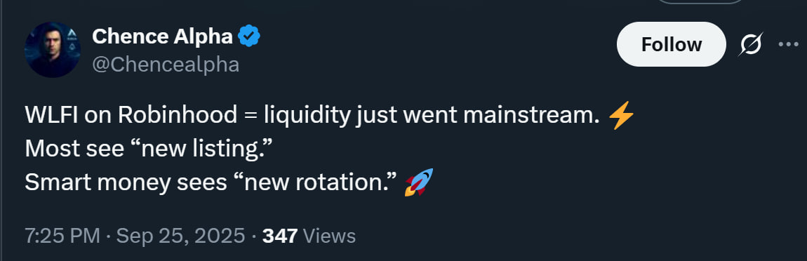 $WLFI is now available to trade on Robinhood. pic.twitter.com/tQb6HJp3bF