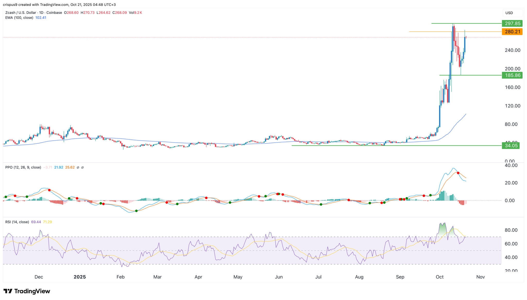 Der Zcash-Kurs setzte seine starke Rallye in dieser Woche fort, während der Kryptomarkt an Fahrt gewann. Der ZEC-Token stieg vier Tage in Folge und näherte sich langsam dem bisherigen Jahreshoch von 297 US-Dollar.